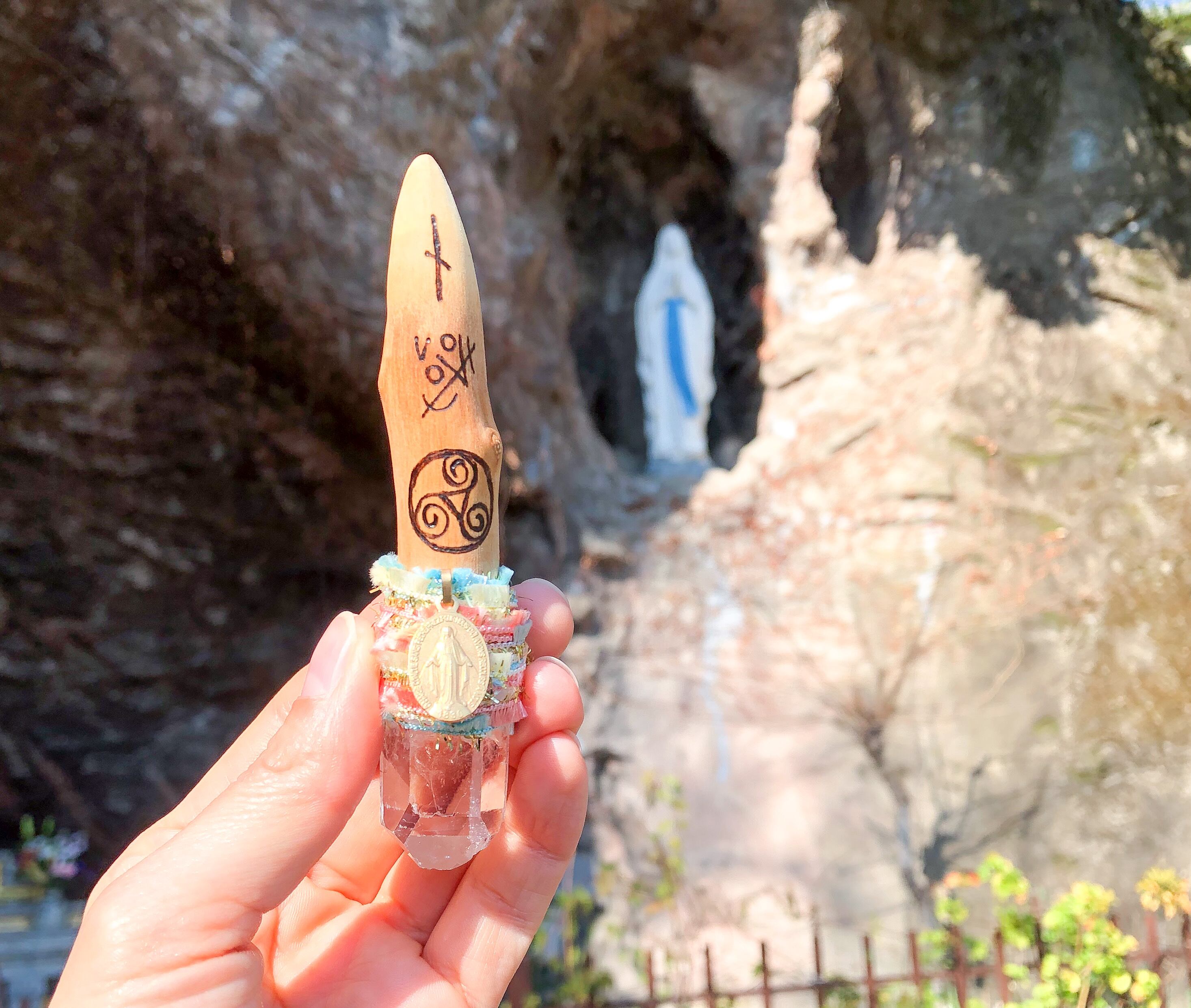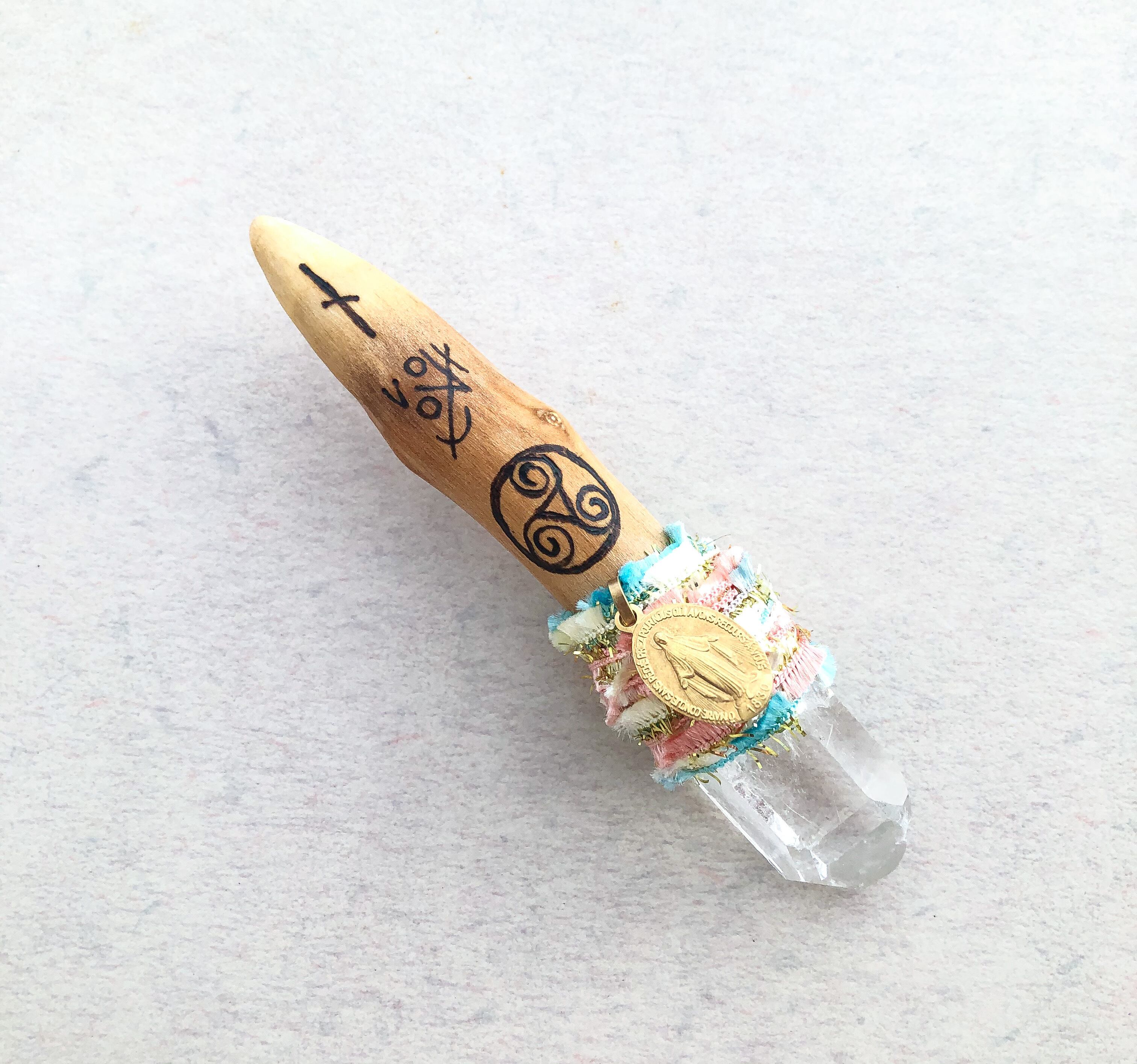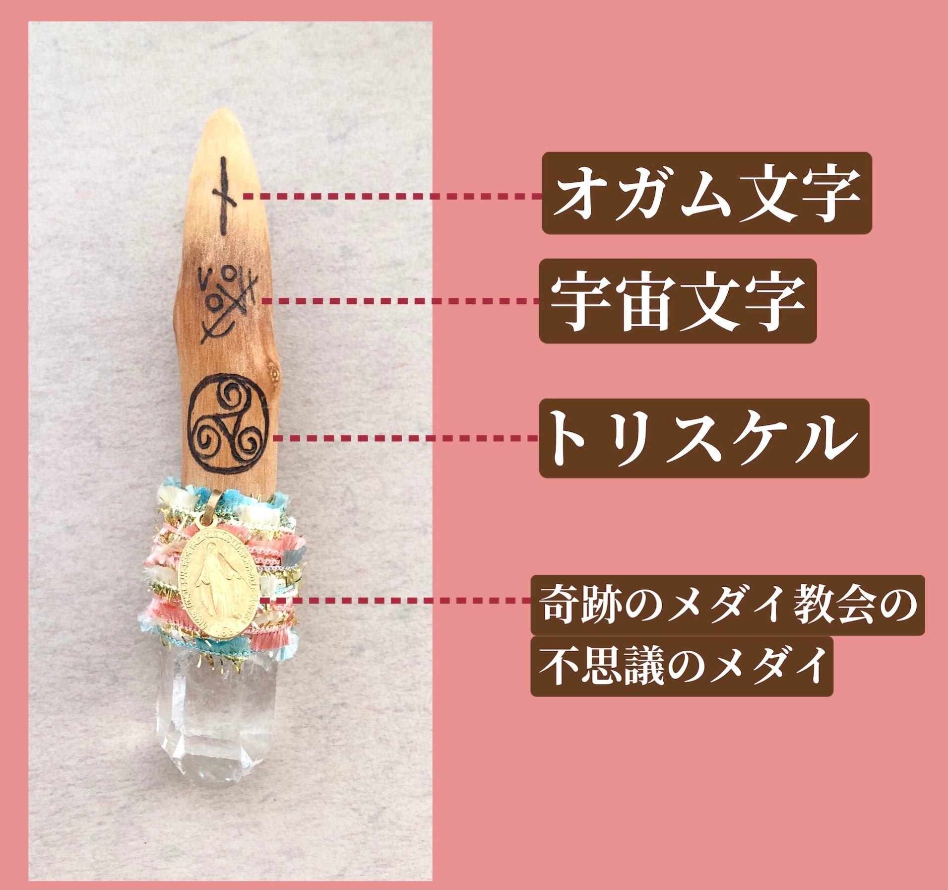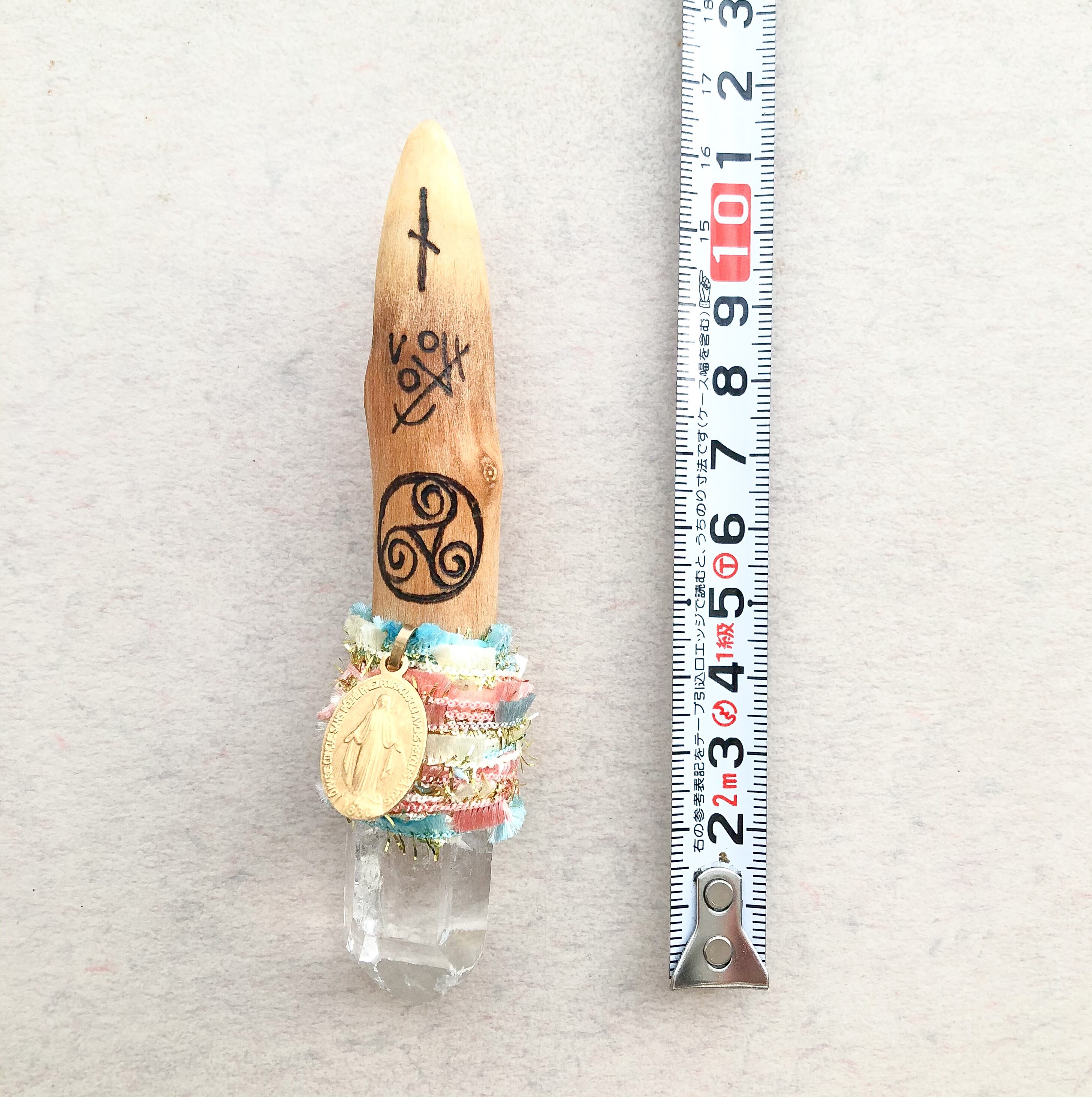不思議のメダイ付き木製ワンドです。
