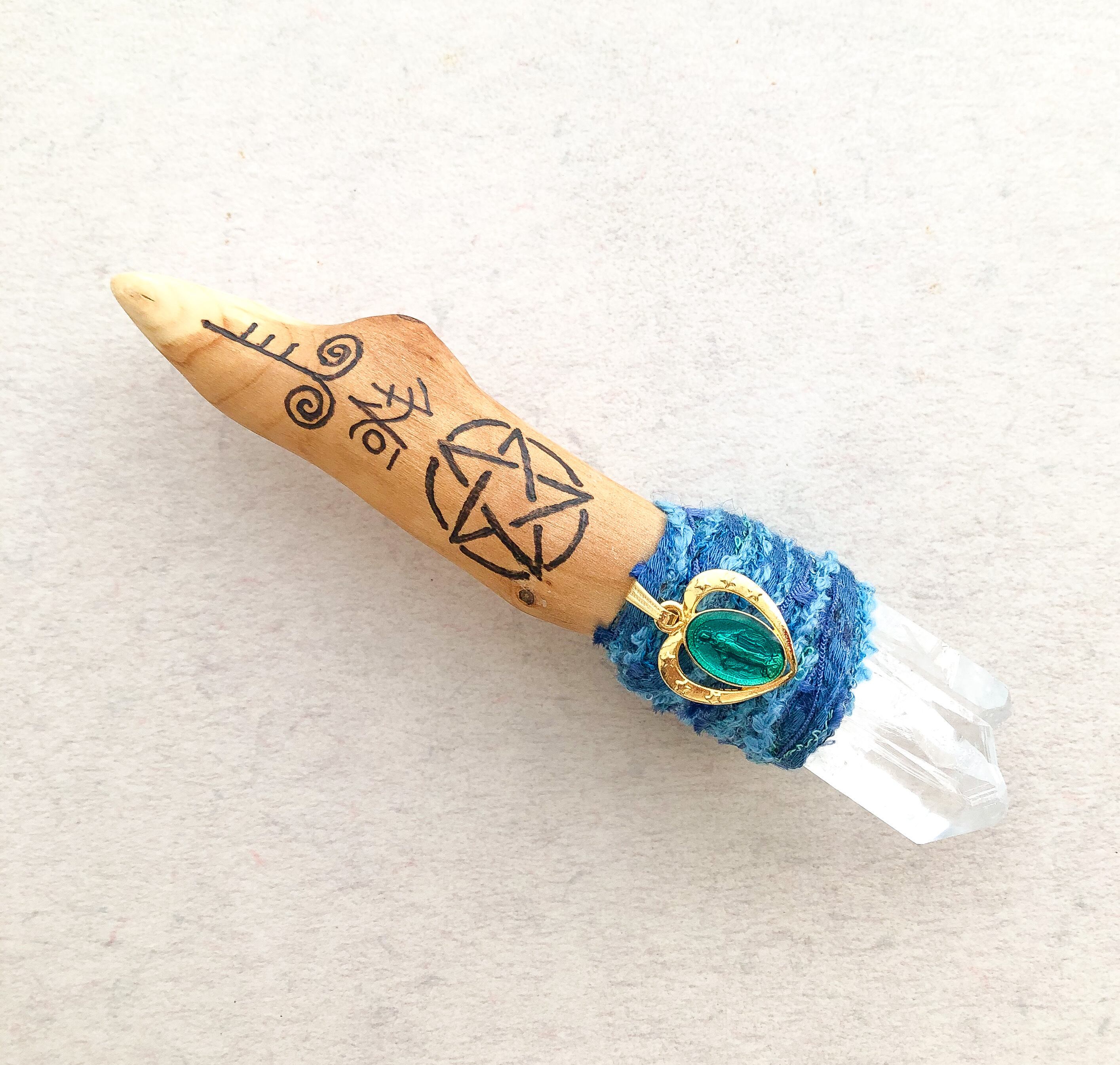 不思議のメダイ付き木製ワンドです。