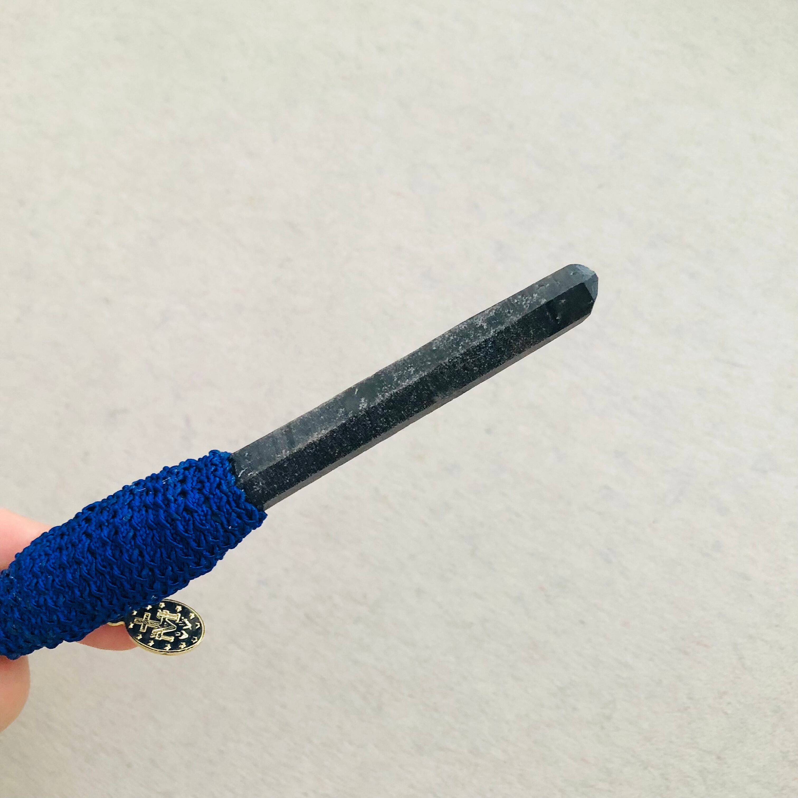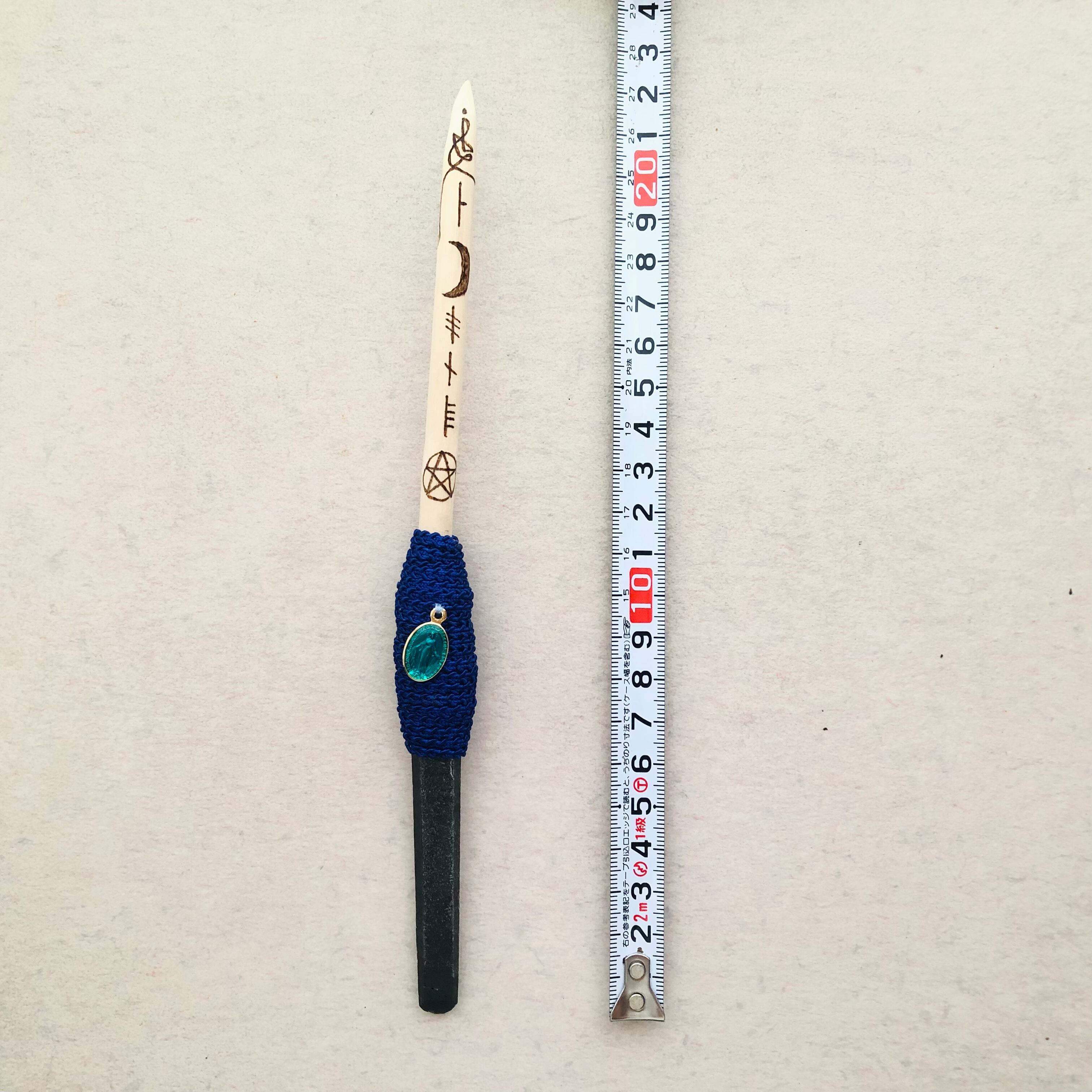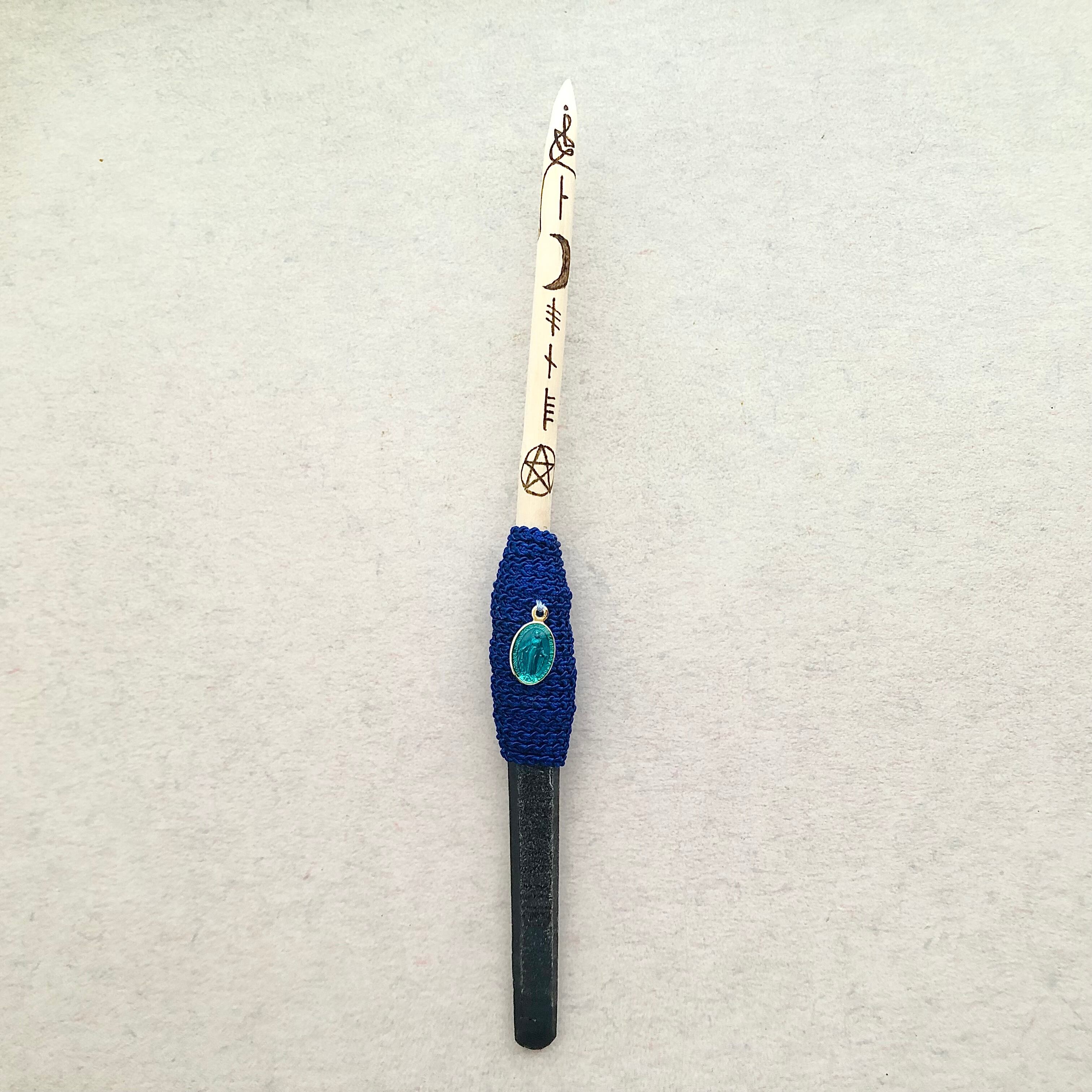 トネリコの木の枝、天然石、不思議のメダイを組み合わせたスリムワンド。