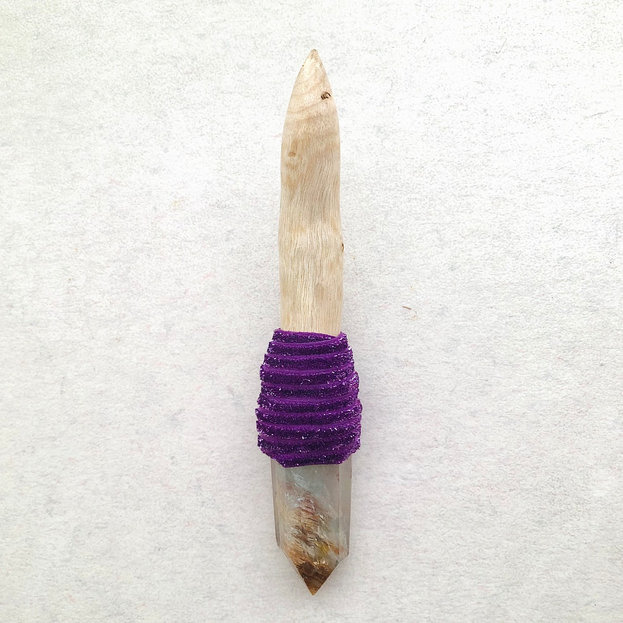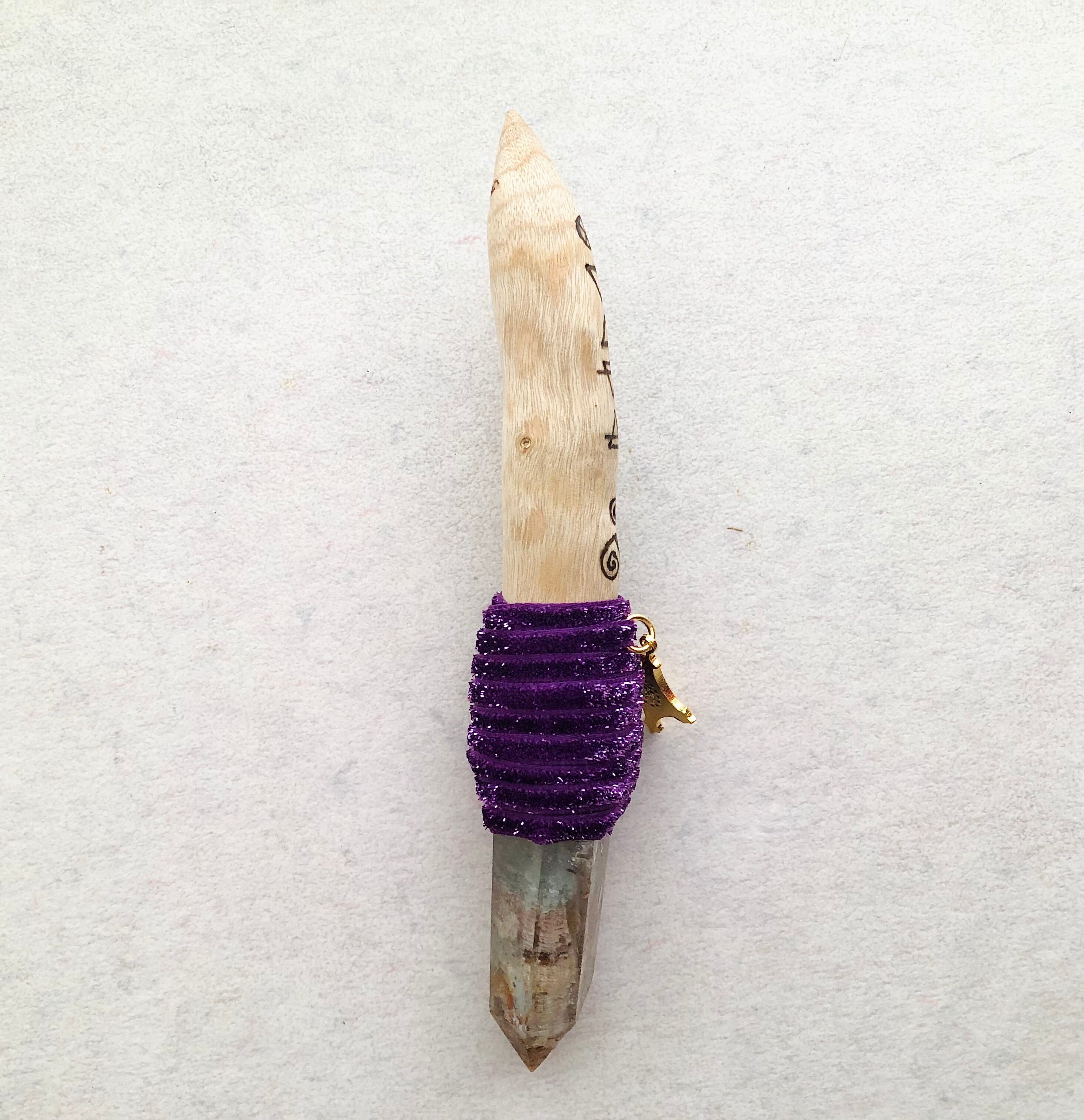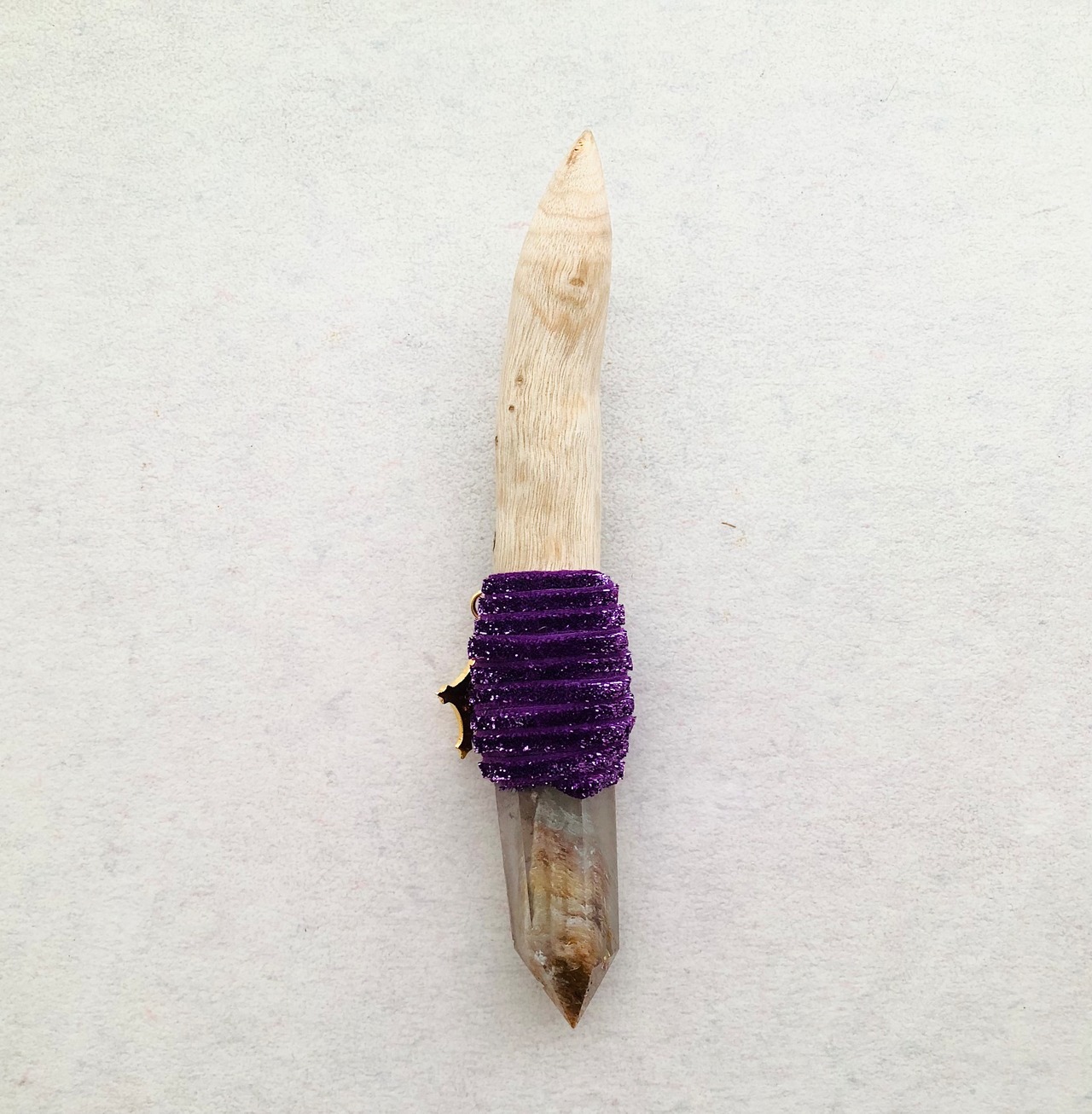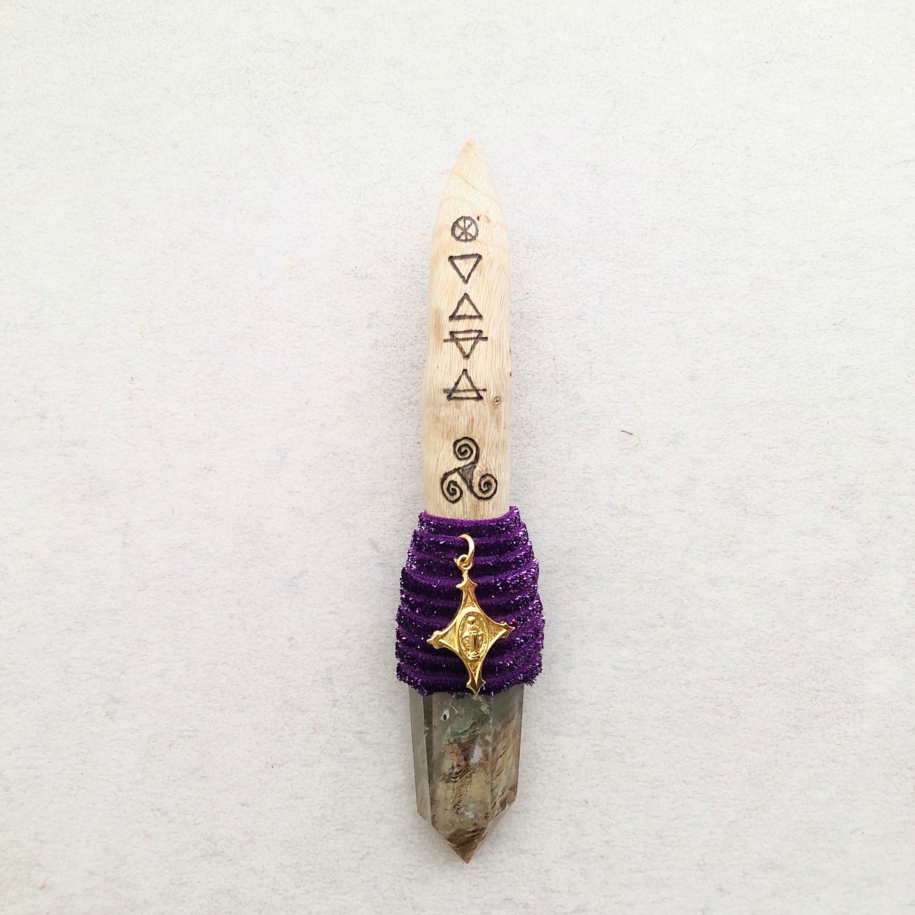 被爆したのち、現在も生き続けている長崎県・山王神社のクスノキの枝、ガーデンクォーツ、不思議のメダイを組み合わせたワンド。