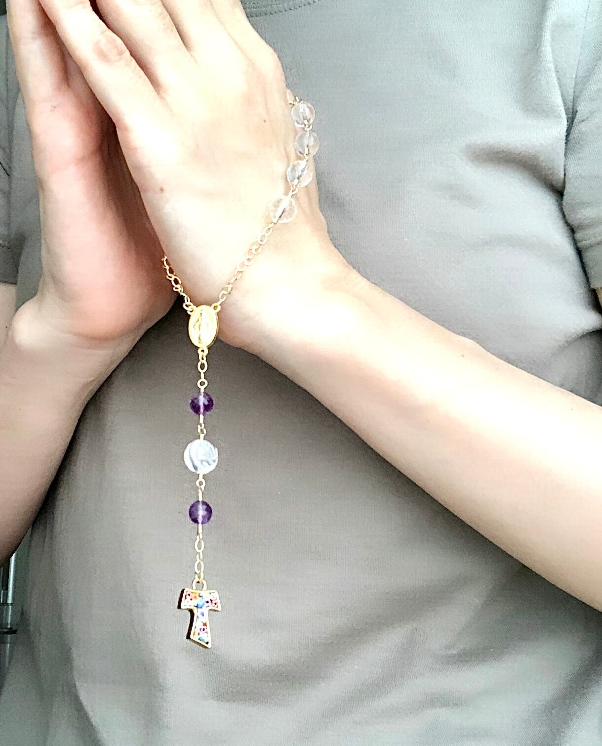 ミニロザリオは本来「アヴェマリアの祈り」を唱えながらキリストの生涯に現れた神のいつくしみを黙想するときに使用します。