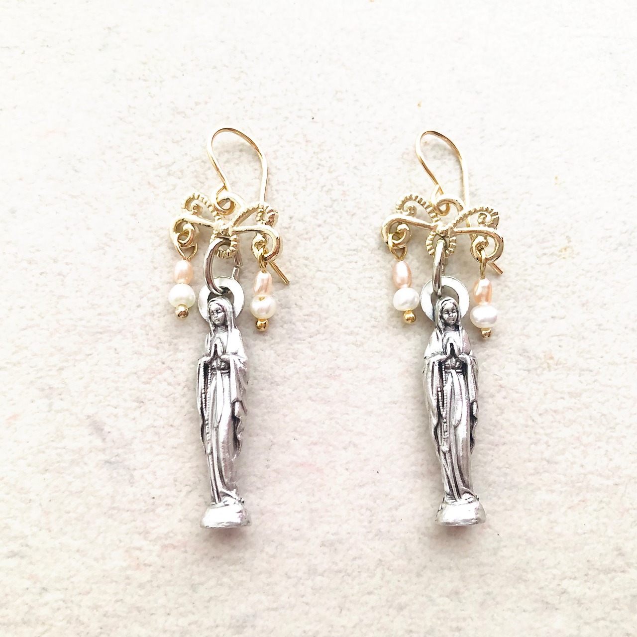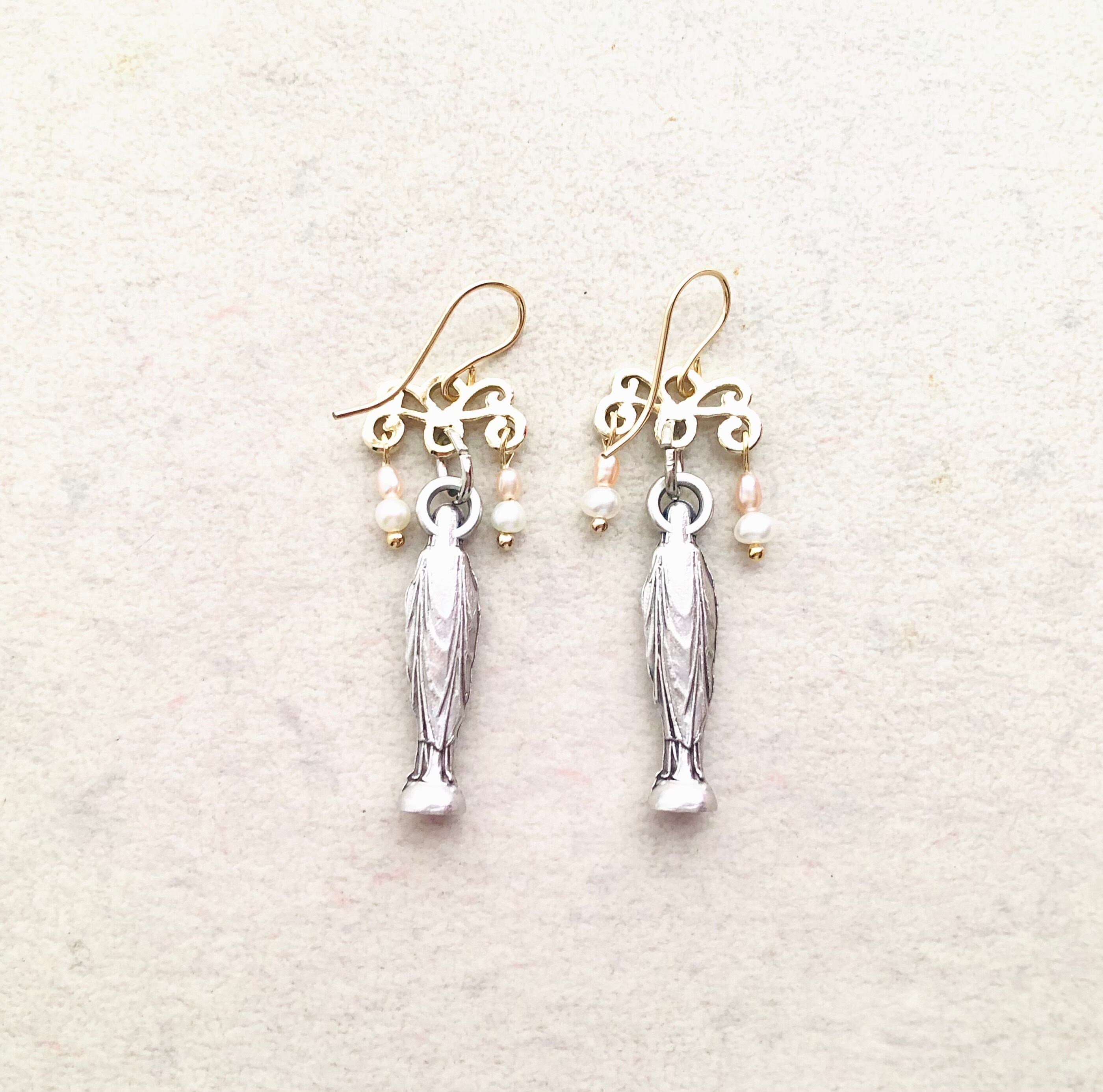 マリア様とパールを組み合わせたピアスです。